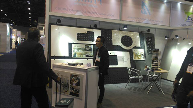榮冠公司帶領旗下石英石臺面板產品閃亮登場,