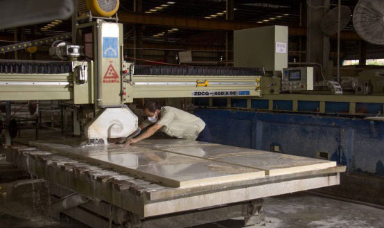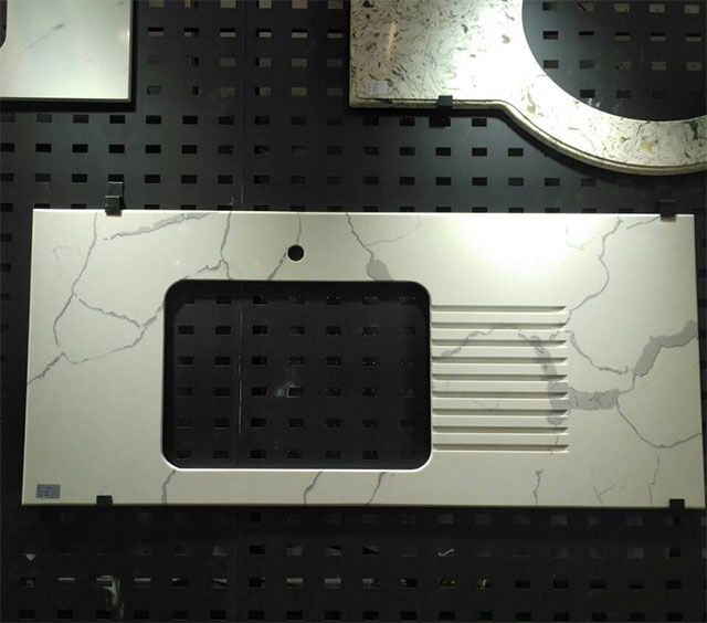 榮冠在石英石制作方面始終堅持高標準做工要求,車間使用的五軸數控橋切機,配備紅外線定位系統,全程電腦操控,確保切割后成品的幾何尺寸、角度尺寸、對角線尺寸精準無誤,同時也避免切割過程中出現的崩邊、缺角現象。復雜工藝和精選的天然板材鑄就了建材行業領先的石英石板材品質。