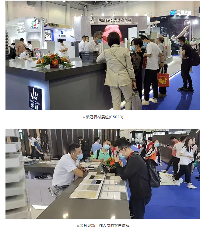 眾多觀展者對品種多樣、花色豐富多彩的榮冠崗石和石英石產品感到驚艷,并給予了一致的好評。