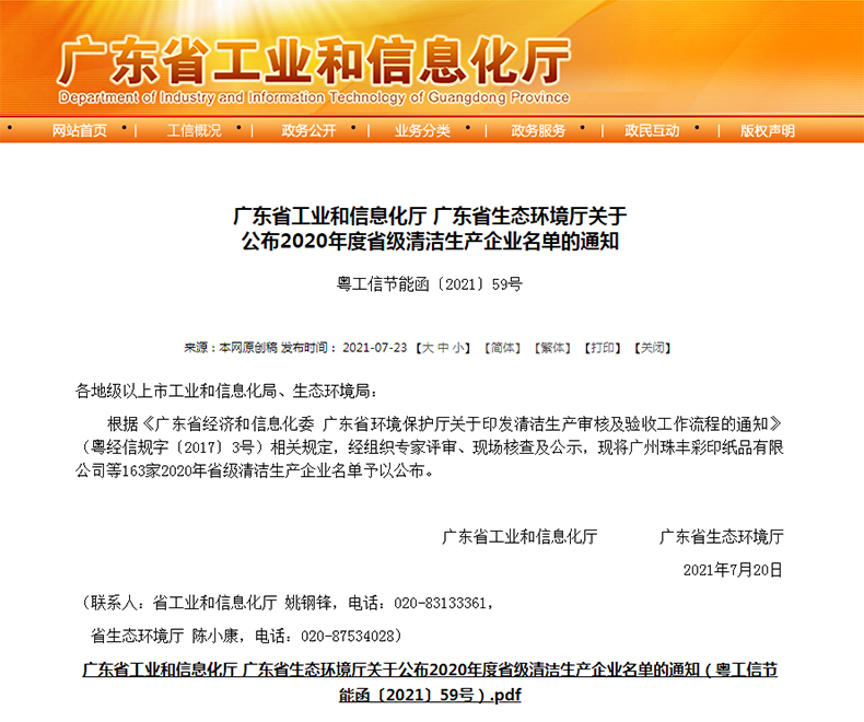 日前,廣東省工業和信息化廳、廣東省生態環境廳發布通知,經組織專家評審、現場核查及公示,公布了163家2020年省級清潔生產企業名單。佛山市榮冠玻璃建材有限公司喜獲“2020年度省級清潔生產企業”稱號。