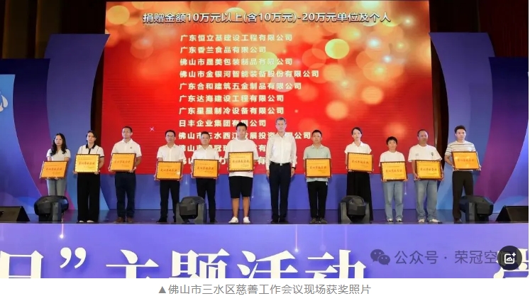 凝心聚力,攜手向善!9月5日,佛山市三水區召開2024年全區慈善工作會議。會議圍繞“百千萬工程”建設、各類慈善活動的開展作總結說明,對愛心奉獻企業進行表彰。榮冠公司熱心公益、積極支持慈善事業,獲得白坭鎮慈善會授予“愛心奉獻企業”榮譽稱號。