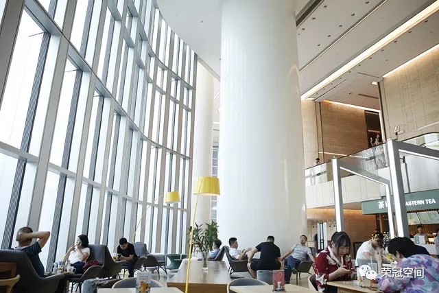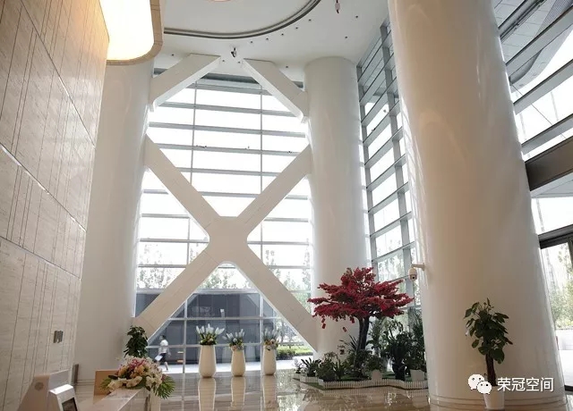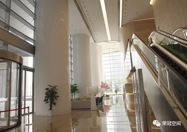 當你進入到建筑內部,你會發現"新銳"、"前衛"、"時尚"是它內部裝飾的代名詞。整個空間聳立著多條白潤如玉的人造石圓柱,溫潤的質地,美觀而高雅,恰似朝日升起前的清爽、明凈,讓你的眼光不自覺的就被它所吸引過去。