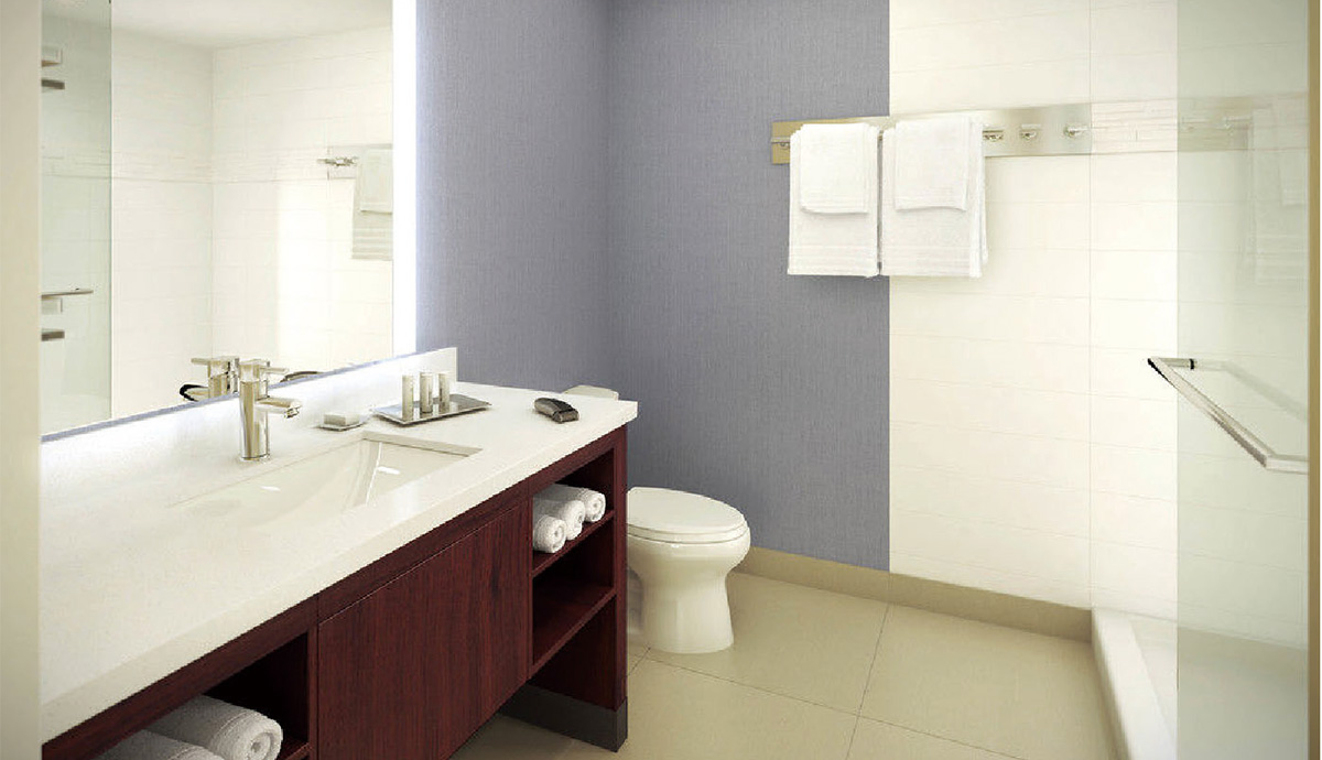 舒適度作為洛杉磯機場萬豪酒店的首要標準,一切設施都以此為目標。其中選用了榮冠石英石QS301用于臺面板。榮冠石英石表面如晶如點的花式細密清晰,玉石般晶瑩剔透,觸感溫潤細滑,造就了酒店的簇新面貌,不論是餐廳、洗衛室都增添一份時尚雅致的氣息,讓旅客瞬間忘記旅途的疲倦。